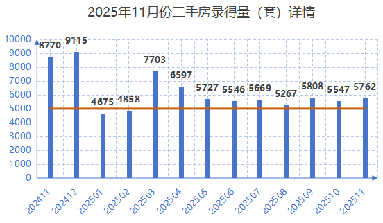 根据深房中协统计数据,11月深圳二手房录得量5762套,环比增长3.9%,已经连续9个月稳定在5000套以上了。